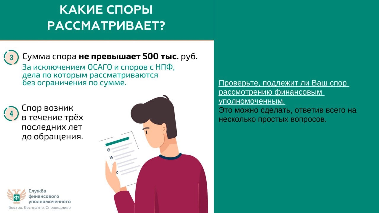 Проверьте свой спор на официальном сайте финансового уполномоченного finombudsman.ru: подлежит ли он рассмотрению финансовым уполномоченным? Это можно сделать, ответив всего на несколько простых вопросов.