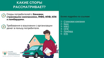 Вы можете подать обращение в отношении страховой компании, банка, микрофинансовой организации, негосударственного пенсионного фонда, ломбарда и кредитного потребительского кооператива.